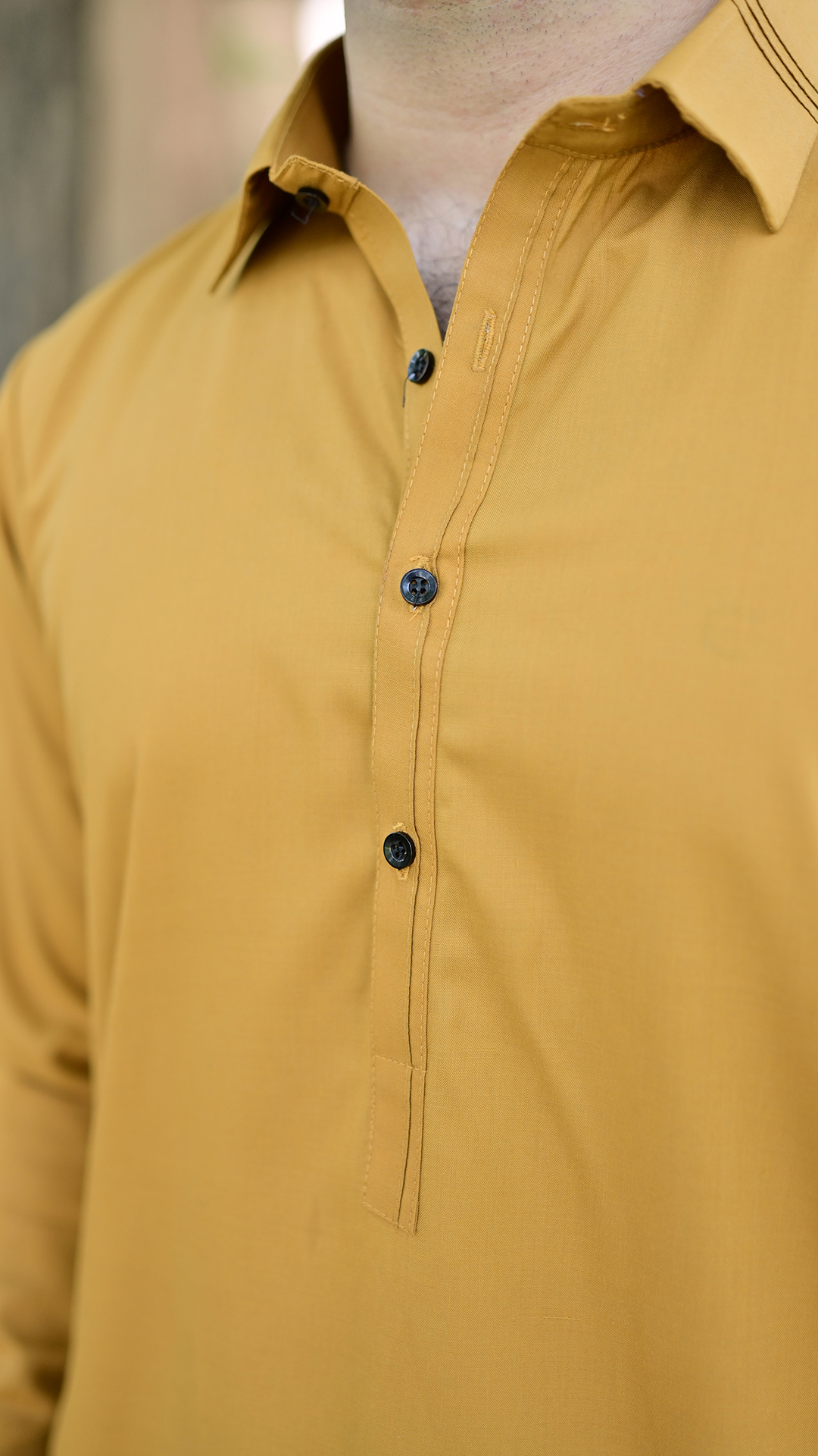 Timeless elegance meets effortless comfort. This Camel Shalwar Kameez is crafted from high-quality wash & wear fabric, offering a smooth, wrinkle-free finish. Designed for all-season wear, it ensures breathability and durability. The premium stitching adds a refined touch, making it perfect for both casual and formal occasions