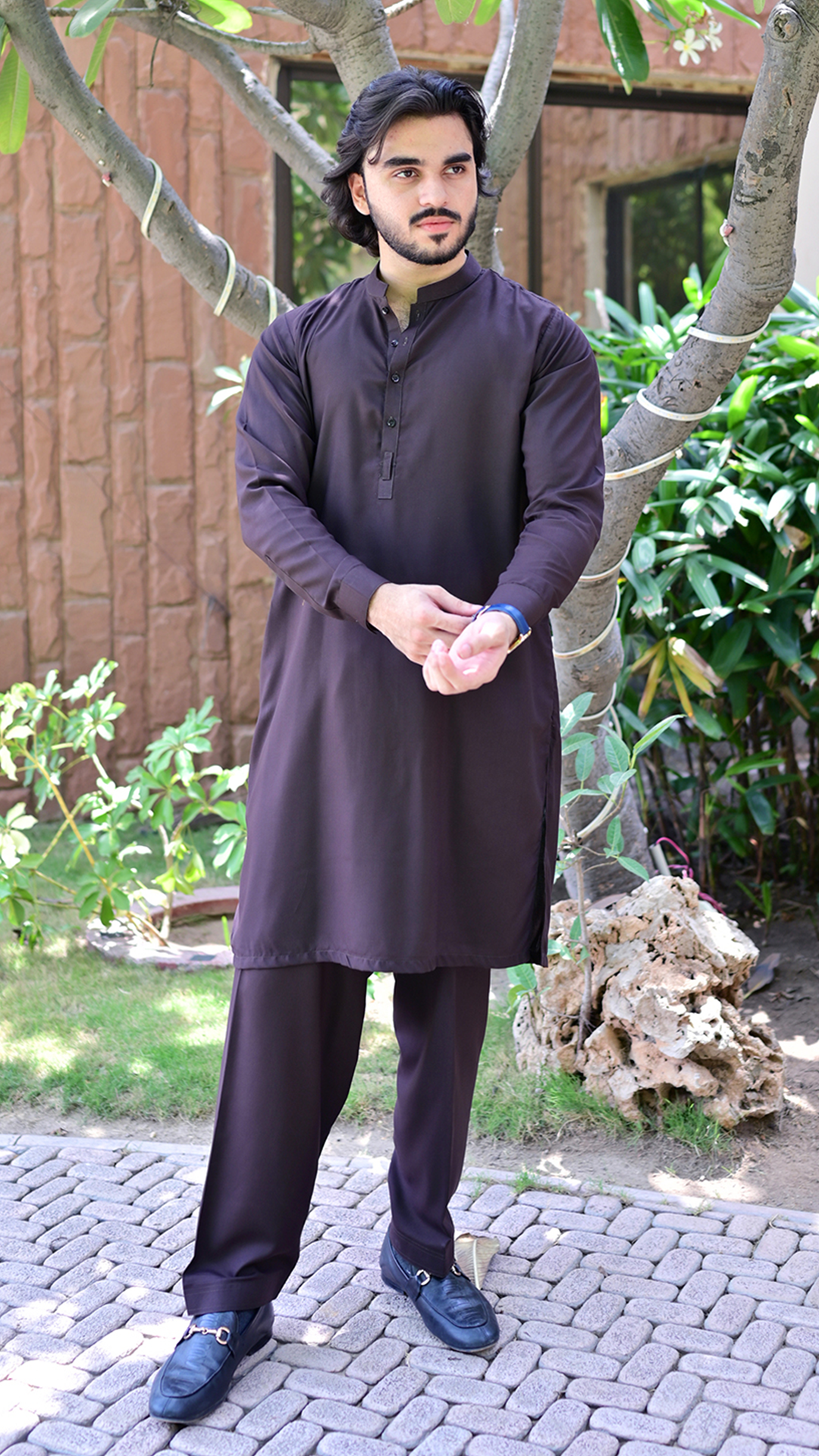 Timeless elegance meets effortless comfort. This Mulled Wine Shalwar Kameez is crafted from high-quality wash & wear fabric, offering a smooth, wrinkle-free finish. Designed for all-season wear, it ensures breathability and durability. The premium stitching adds a refined touch, making it perfect for both casual and formal occasions