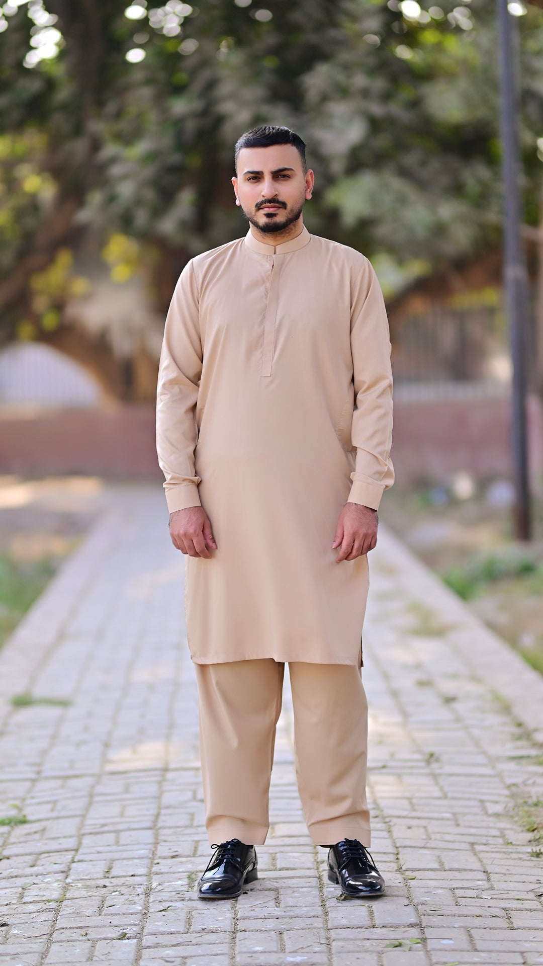 Timeless elegance meets effortless comfort. This Tea Skin shalwar kameez is crafted from high-quality wash & wear fabric, offering a smooth, wrinkle-free finish. Designed for all-season wear, it ensures breathability and durability. The premium stitching adds a refined touch, making it perfect for both casual and formal occasions